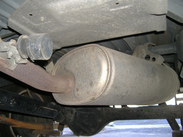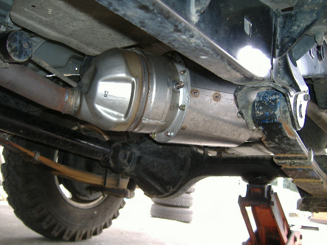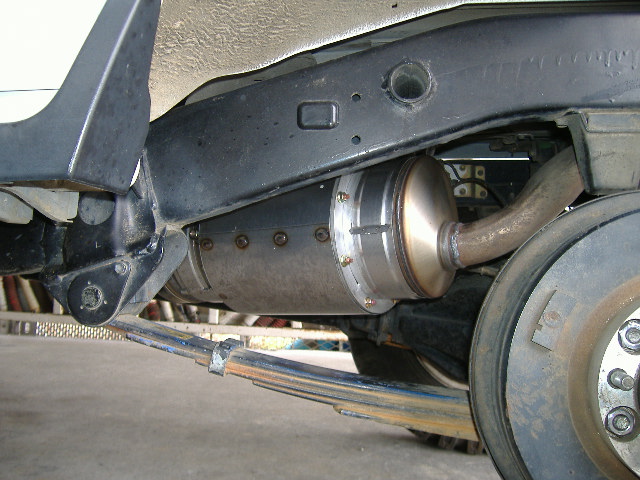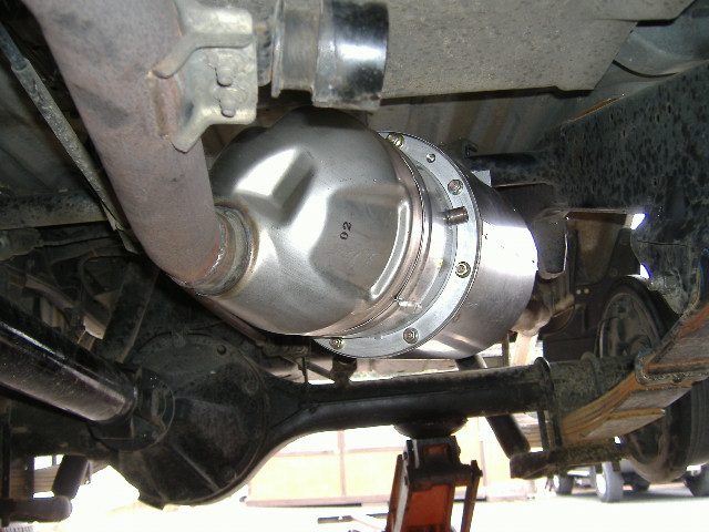 純正のリアマフラーの太鼓の部分を取り外し、DPF本体を溶接しました。